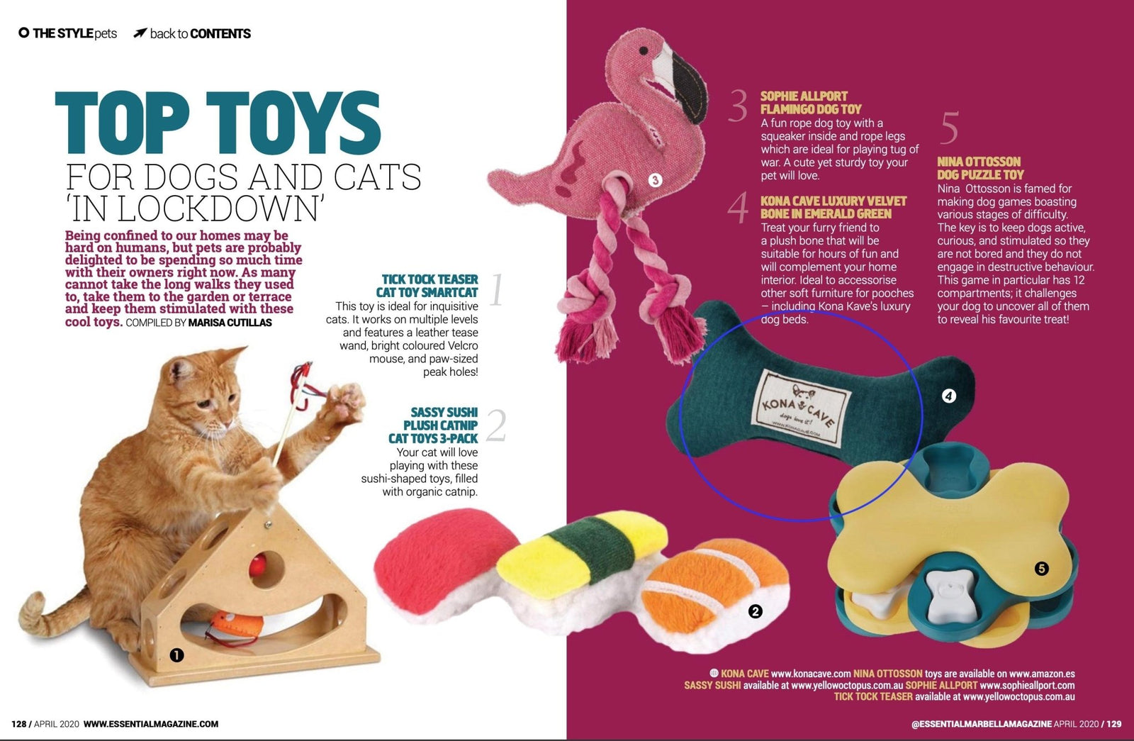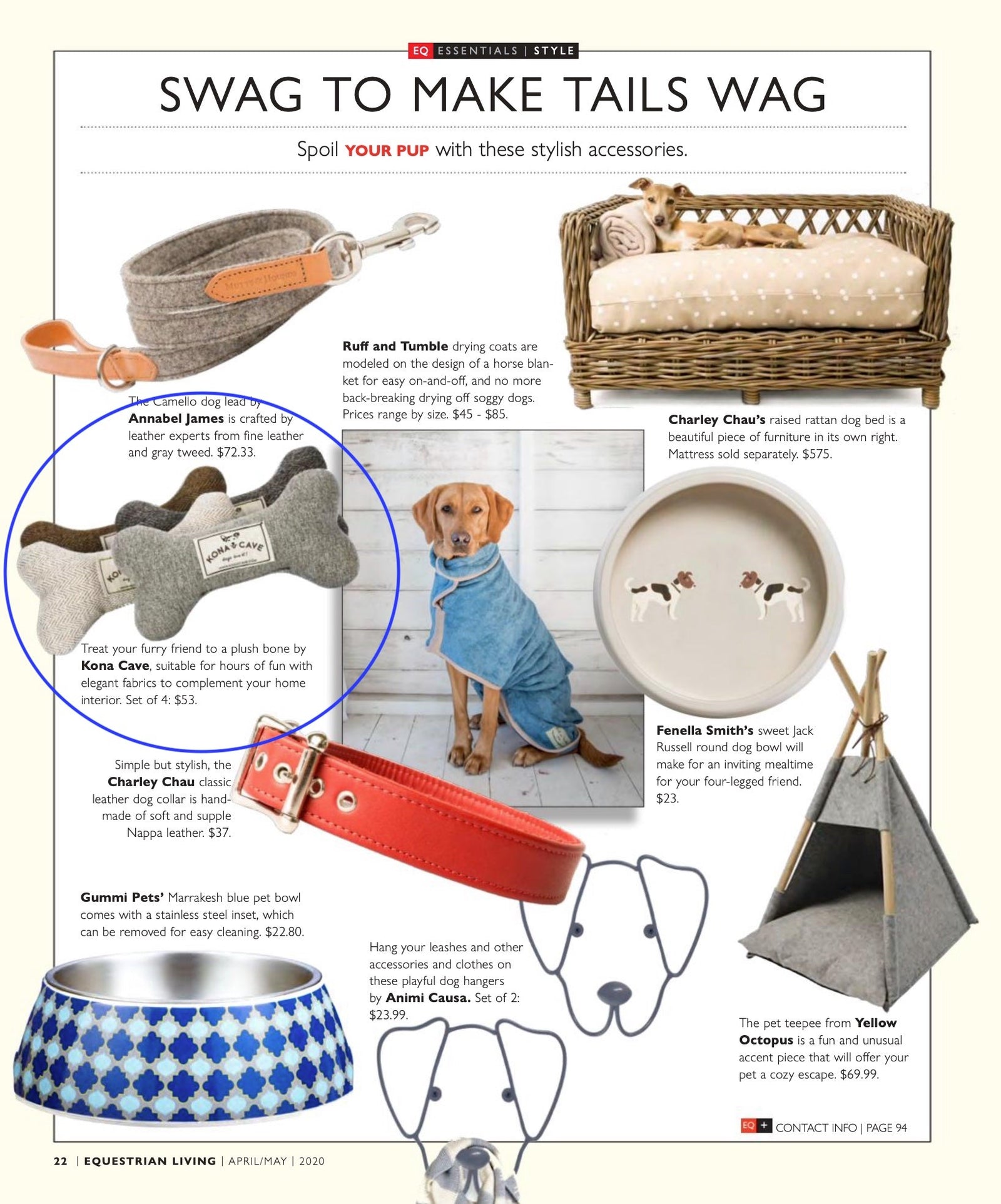 The KONA CAVE® Doggy Décor Sets featured in ELLE Italia Magazine.